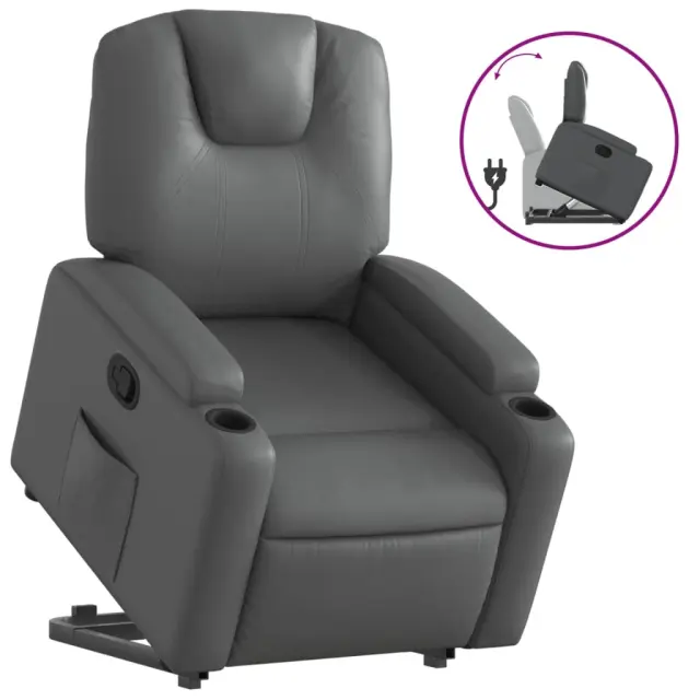 Naslanjač - Relax naslanjač s funkcijo vstajanja siva umetno usnje