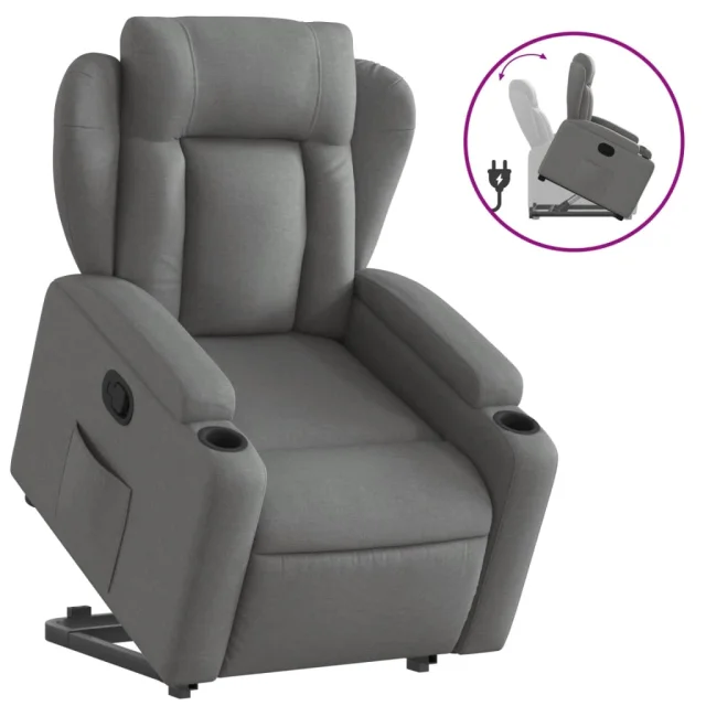 Naslanjač - Relax naslanjač s funkcijo vstajanja temno sivo blago