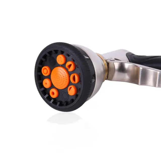 Ta nastavek za vrtno cev je pištolskega modela, ki zagotavlja udoben oprijem in enostavno rokovanje. Šoba ponuja vsestransko uporabo z 9 različnimi nastavljivimi nastavitvami vodnega curka.
