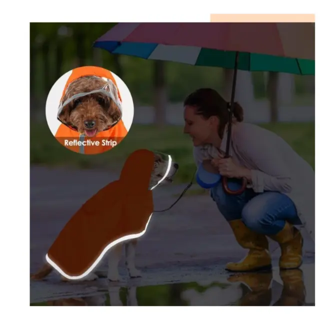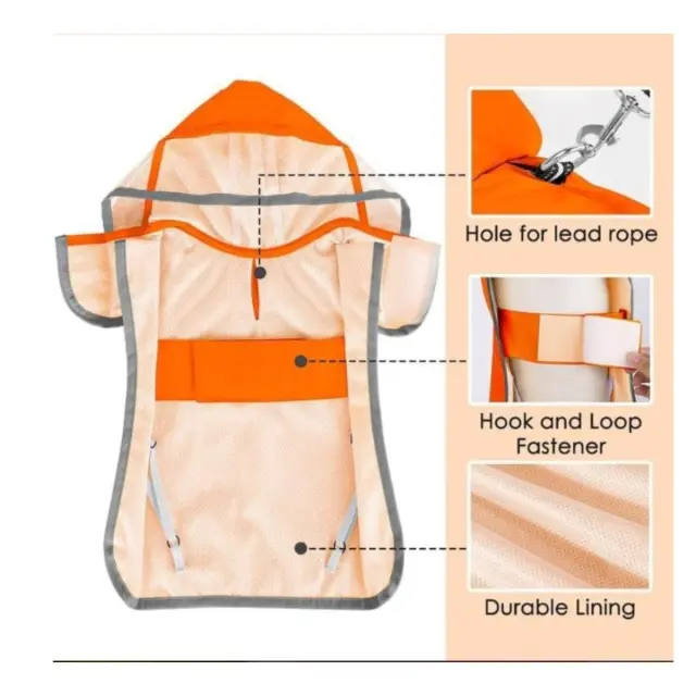 Nastavljivo udobje: Ta pasji pončo je zasnovan z nastavljivo kapuco in varnimi zapirali, zato ponuja prilagodljivo prileganje za pse različnih velikosti in pasem. Nastavljive funkcije zagotavljajo tesno in udobno prileganje, kar preprečuje, da bi dežni plašč zdrsnil ali oviral gibanje vašega hišnega ljubljenčka. Nastavljiv dežni plašč za pse zagotavlja udobno prileganje. Pasji dežni plašč s kapuco nudi tudi dodatno pokritost in zaščito za pasjo glavo. Uživajte v sprehodih brez težav z dežnim plaščem, ki se prilagaja edinstveni obliki in velikosti vašega ljubljenčka.