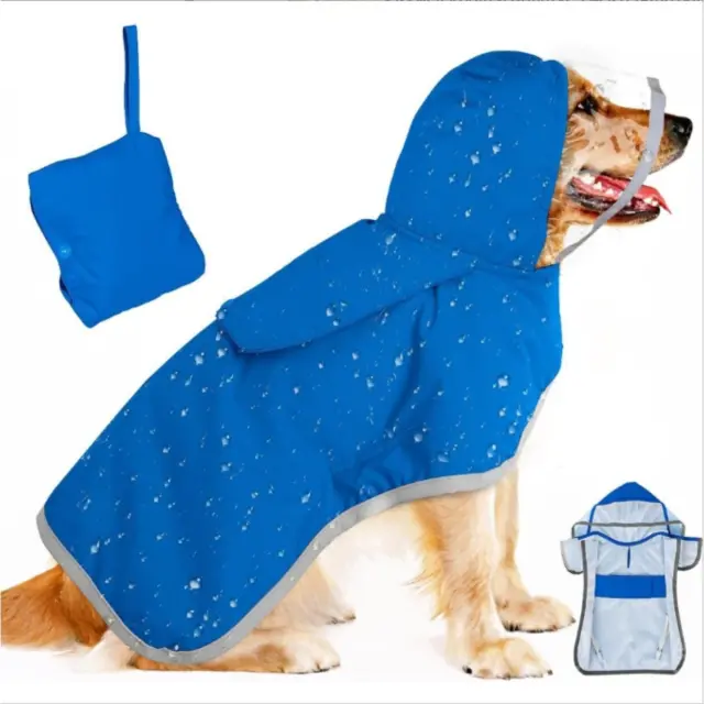 Nastavljiv dežni plašč za pse s kapuco - idealen za male in velike pse Blue L