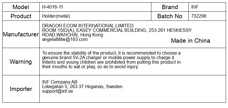 Za zagotovitev stabilnosti izdelka je priporočljivo, da za polnjenje izberete originalen polnilnik 5 V-2 A znamke ali mobilni napajalnik. Dojenčkom in majhnim otrokom je prepovedano dajati ta izdelek v usta, da bi jedli ali se igrali, da se izognete poškodbam.