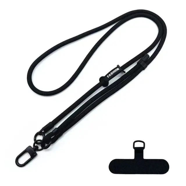 Univerzalna združljivost: Ta univerzalni pašček za telefon je zasnovan tako, da brezhibno deluje z večino ovitkov in zagotavlja varno in zanesljivo točko pritrditve. Zaradi majhne širine, ki znaša le 7 mm, ne ovira delovanja telefona in ne povečuje njegove velikosti. Robustni najlonski material zagotavlja tudi izjemno vzdržljivost.