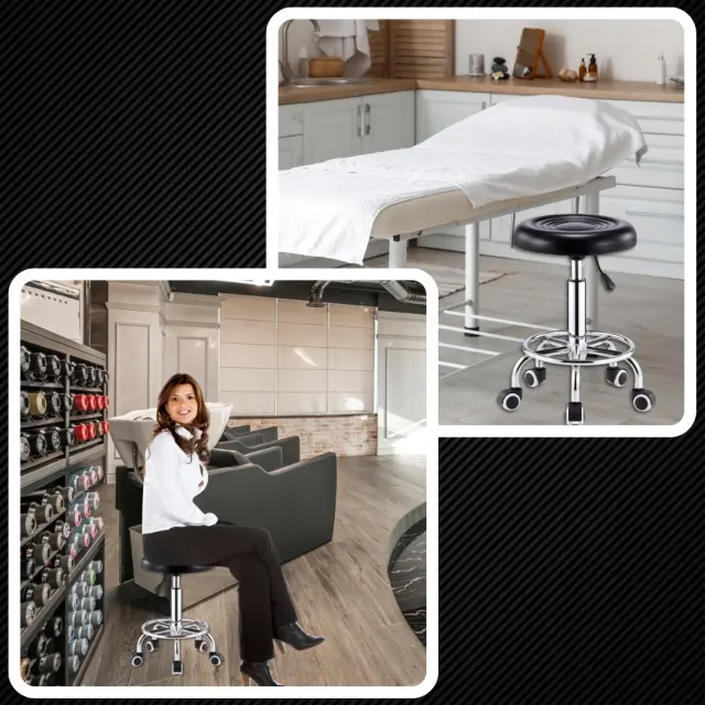 Nastavljiv vrtljiv usnjen frizerski stol črn – mehka kolesa