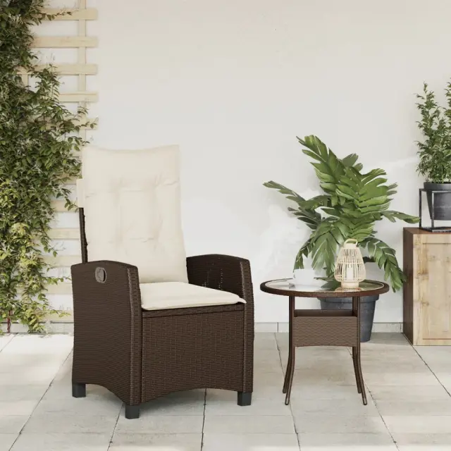 Nastavljiv Vrtni Stoli - Stol za vrt z blazino rjav poli ratan JS48