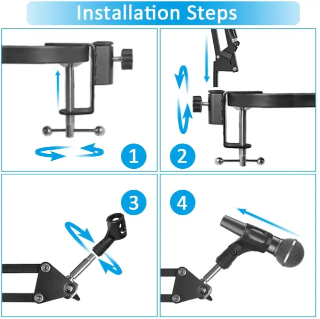 Široka združljivost: stojalo je združljivo z držali za mikrofon z vmesnikom 1/4. Pritrdite držalo za mikrofon ali objemko za mikrofon, ki je primerna za vaš mikrofon.