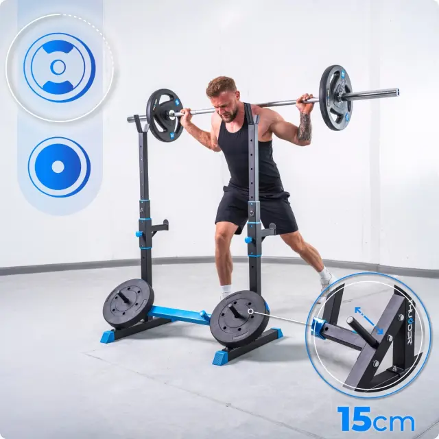 Nastavljiva poševna fitnes klop THUNDER® FREELY + stojalo za uteži CARMI – do 120 kg / 200 kg