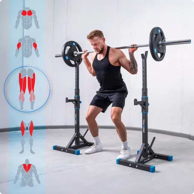 Komplet THUNDER® WOXIC s stojalom PRESA je zasnovan za varno, stabilno in vsestransko domačo vadbo. Primeren je za uporabnike, ki želijo učinkovito trenirati moč in kondicijo z osnovno fitnes opremo.