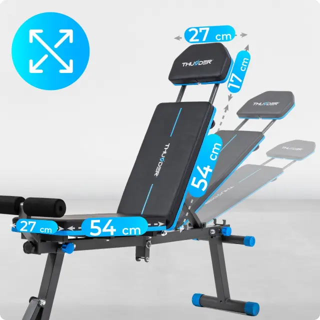 Nastavljiva vadbena klop – zložljiva, 125 × 34 × 158 cm, nosilnost 150 kg THUNDER® WOXIC