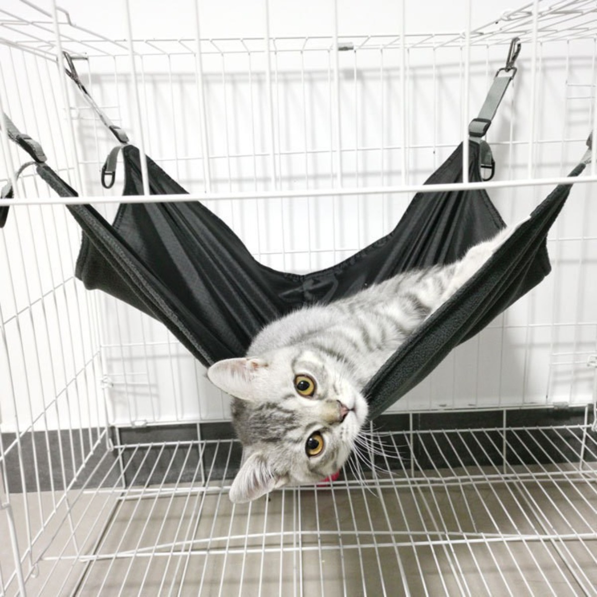Trpežna in varna konstrukcija: Ta viseča postelja za mačke, zasnovana za varnost in stabilnost, zlahka podpira hišne ljubljenčke do 11 kg. Robustna najlonska konstrukcija zagotavlja dolgotrajno delovanje, medtem ko varni viseči trakovi zagotavljajo zanesljivo in stabilno platformo za počitek vaše mačke. Ojačani šivi in visokokakovostni materiali zagotavljajo, da bo viseča mreža vzdržala vsakodnevno uporabo in se upirala obrabi. Ta viseča mreža je zasnovana tako, da zagotavlja varno in zanesljivo okolje za vašo mačko, kar vam daje mir, saj veste, da se udobno spočiva. Nastavljivi trakovi vam omogočajo, da prilagodite višino in položaj viseče mreže, kar zagotavlja popolno prileganje kateri koli kletki ali prostoru. Je praktična in zanesljiva izbira za lastnike mačk, ki jim je varnost in dobro počutje njihovih hišnih ljubljenčkov na prvem mestu.