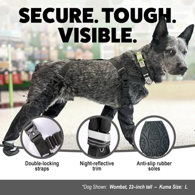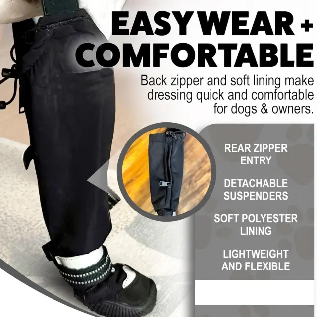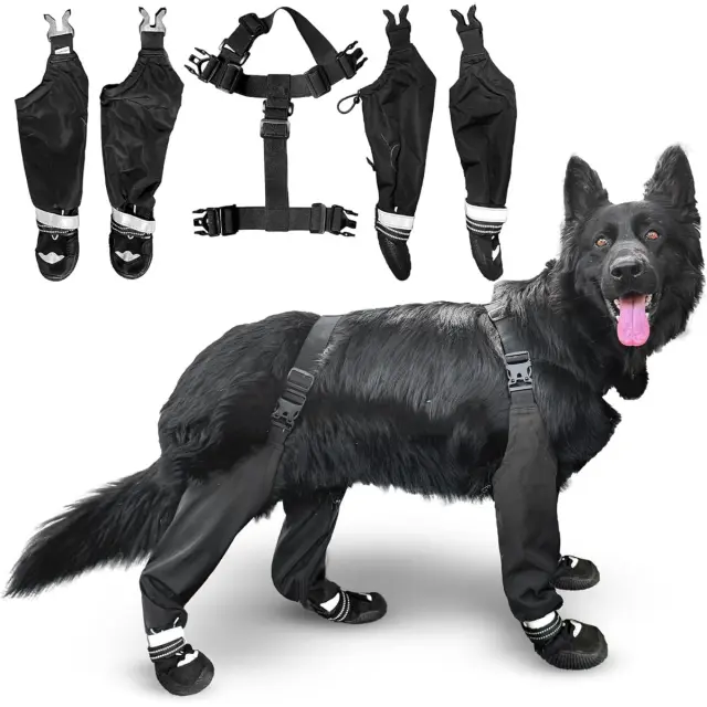 Priročna nastavljiva zasnova: Prosimo, upoštevajte: to niso originalni deli. S elastičnimi trakovi in nastavljivimi zaponkami ti pasji čevlji nudijo varno in udobno prileganje za hišne ljubljenčke vseh oblik in velikosti. Uporabniku prijazna zasnova omogoča enostavno obuvanje in sezuvanje, medtem ko odsevni pritrdilni elementi s kavljem in zanko zagotavljajo dodatno vidljivost med nočnimi sprehodi. Nastavljivi trakovi zagotavljajo tesno prileganje in preprečujejo, da bi čevlji zdrsnili med aktivnostmi. Idealno za aktivne pse v državah IE, ki uživajo v izletih na prostem ob katerem koli času dneva. Zaradi priročnosti in varnega prileganja so ti čevlji obvezni za lastnike hišnih ljubljenčkov.