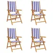 Nastavljivi vrtni stoli - Stol za vrt 4 kosi modro in belo blago in trden les JS112