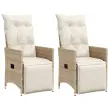 Nastavljivi vrtni stoli - Stol za vrt 2 kosa z blazinami bež poli ratan JS77