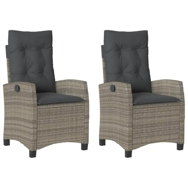 Nastavljivi vrtni stoli - Stol za vrt 2 kosa z blazinami siv poli ratan JS97