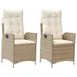 Nastavljivi vrtni stoli - Stol za vrt 2 kosa z blazinami bež poli ratan JS67