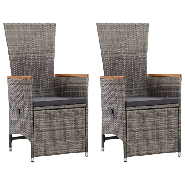Nastavljivi vrtni stoli - Stol za vrt 2 kosa z blazinami poli ratan sivi JS82