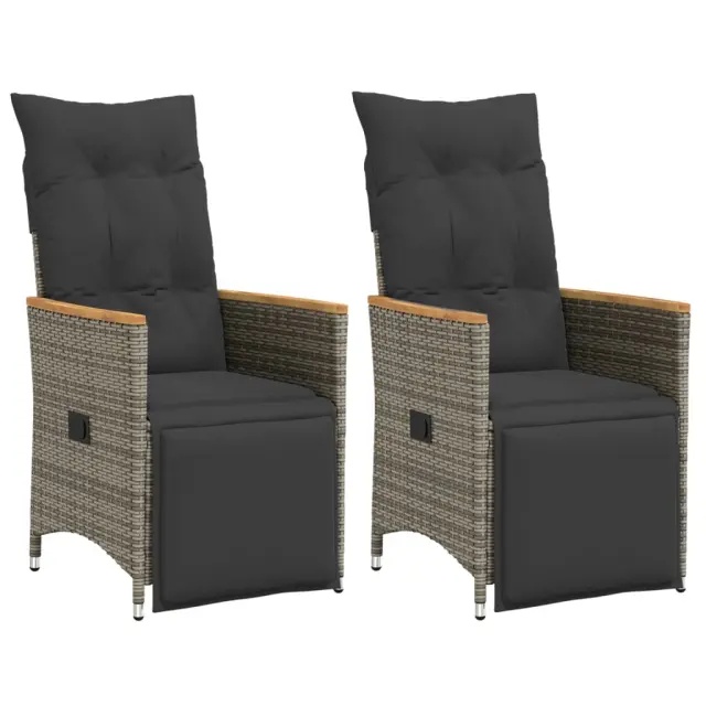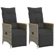 Nastavljivi vrtni stoli - Stol za vrt 2 kosa z blazinami siv poli ratan JS91