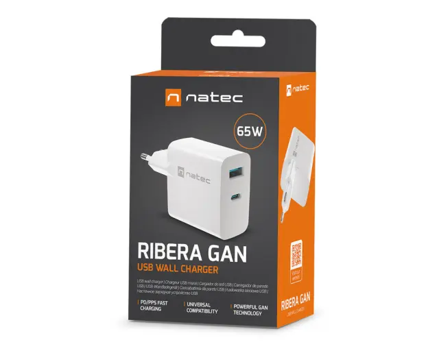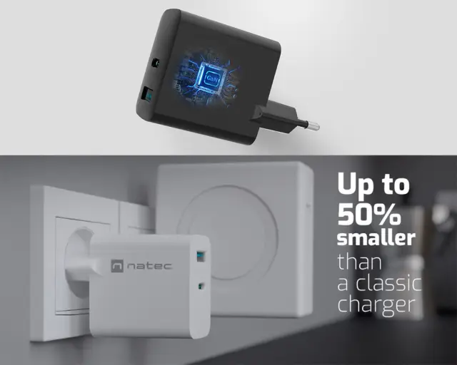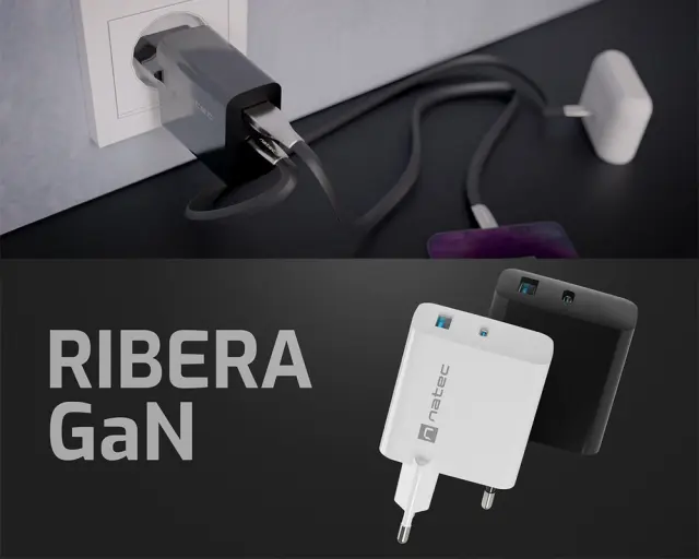 Spoznajte Natec Ribera GaN - USB polnilec z več vhodi, s katerim lahko polnite do 2 napravi hkrati (tudi izbrani prenosniki, ki podpirajo standard PD). Zahvaljujoč tehnologiji hitrega polnjenja in večji energetski učinkovitosti, ki je posledica uporabe galijevega nitrida GaN - novega, učinkovitejšega polprevodnika, ki pozitivno vpliva tudi na manjšo velikost polnilnika. Manjši, lažji in učinkovitejši!