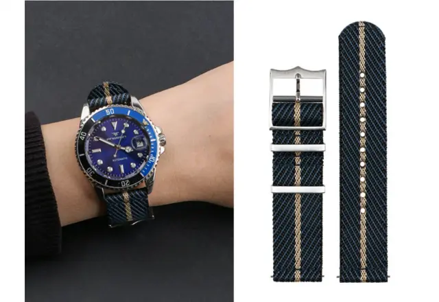 Varno in nastavljivo: Ta trak s klasičnim Nato dizajnom zagotavlja varno in nastavljivo prileganje za različne velikosti zapestja. Zaponka iz nerjavečega jekla zagotavlja zanesljivo zapiranje, medtem ko več lukenj za nastavitev omogoča prilagojeno prileganje.