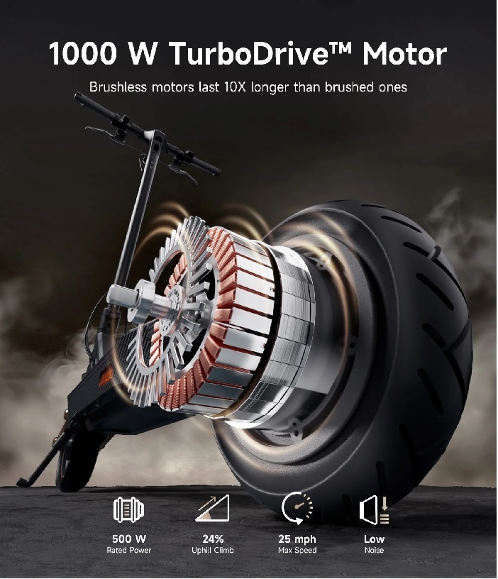 Skiro poganja električni motor z nazivno močjo 500 W in maksimalno močjo 1000 W, ki omogoča hitro pospeševanje ter učinkovito premagovanje klancev do 24 % naklona. To zagotavlja zanesljivo vožnjo tudi na zahtevnejšem terenu.