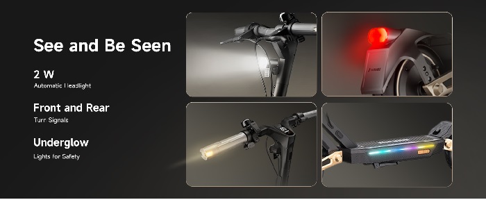 Trdna konstrukcija omogoča nosilnost do 120 kg, teža skiroja pa znaša približno 25,3 kg. Ohišje z zaščito IPX5 omogoča uporabo tudi v rahlem dežju ali na mokrih cestah. Skiro vključuje tudi sprednjo LED luč, zadnjo zavorno luč ter smernike, ki izboljšujejo vidljivost in varnost v prometu.