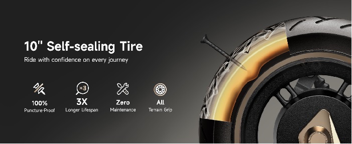 Za vrhunsko udobje poskrbijo 10-palčne tubeless pnevmatike, ki zagotavljajo dober oprijem in večjo odpornost proti predrtju. Skiro je opremljen tudi z dvojnim vzmetenjem spredaj in zadaj, ki učinkovito blaži neravnine na cesti in omogoča stabilno vožnjo tudi na slabših mestnih površinah.