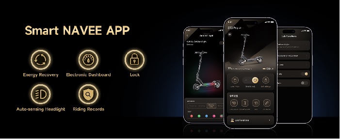 NAVEE ST3 Pro je opremljen z integriranim LED zaslonom, ki prikazuje hitrost, stanje baterije in način vožnje. Skiro podpira tudi povezljivost s sistemom Apple Find My, kar omogoča enostavno lociranje skiroja v primeru izgube.