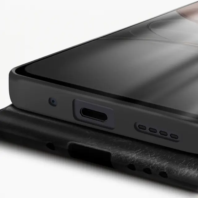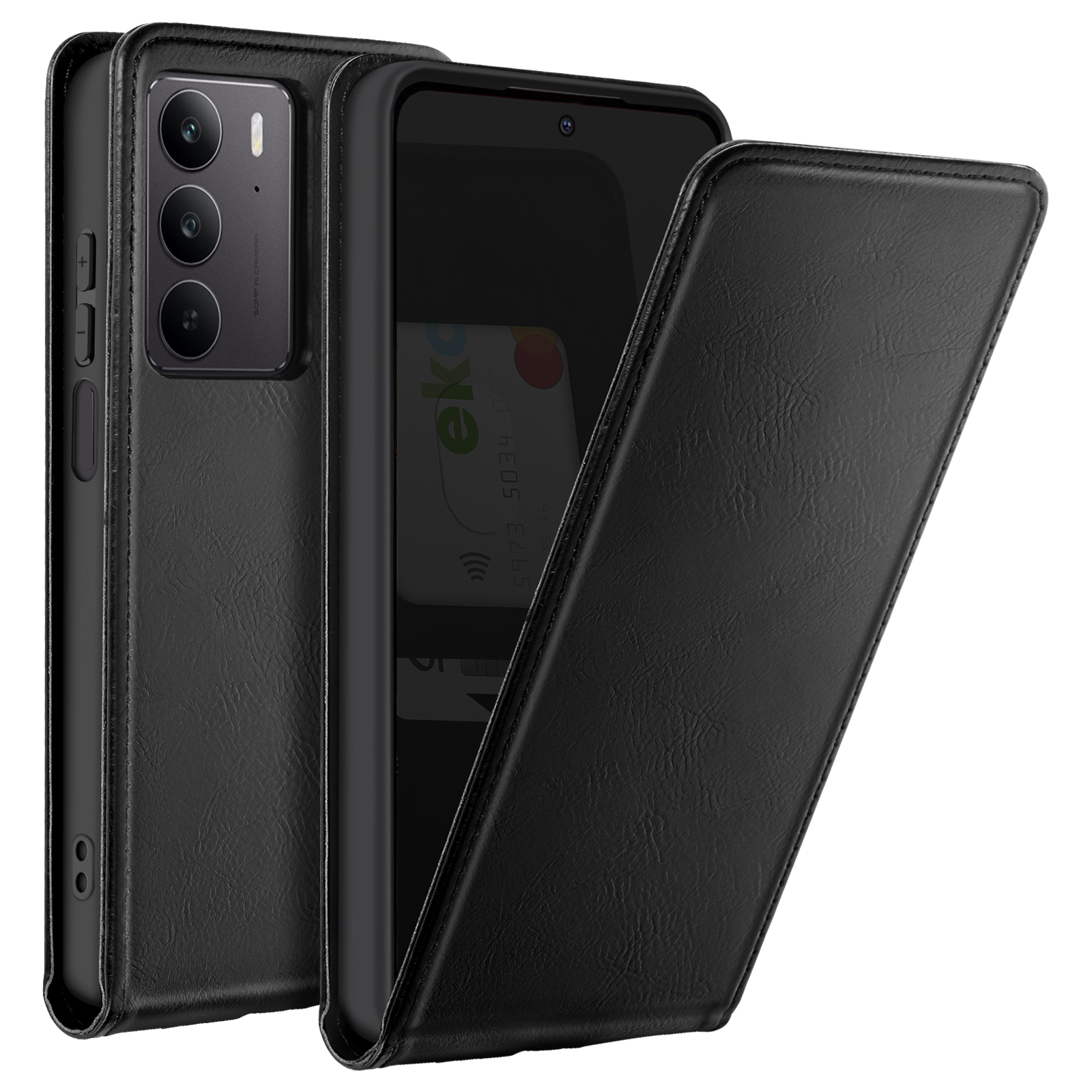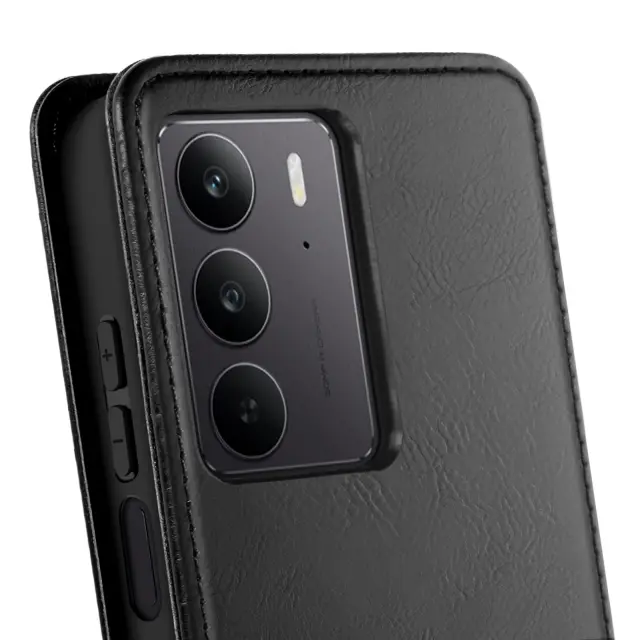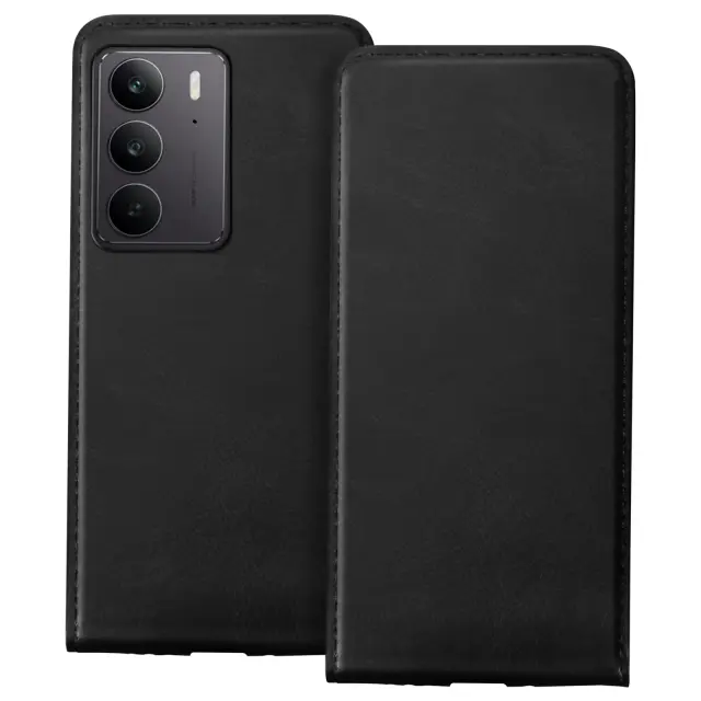 Navpični ovitek s poklopcem za Realme C75 z držalom za kartice, Črna