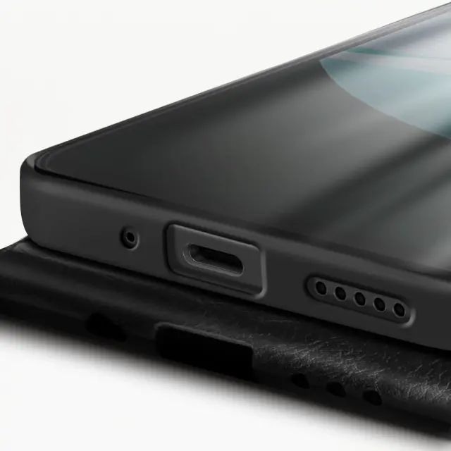 To ohišje je opremljeno z vgrajeno video podporo za prostoročno gledanje.. Navpično odpiranje z varnim dvojnim magnetnim zapiranjem. Vgrajeno držalo za bančne kartice ali vstopnice. Trpežna imitacija usnja za elegantno in dolgotrajno zaščito.