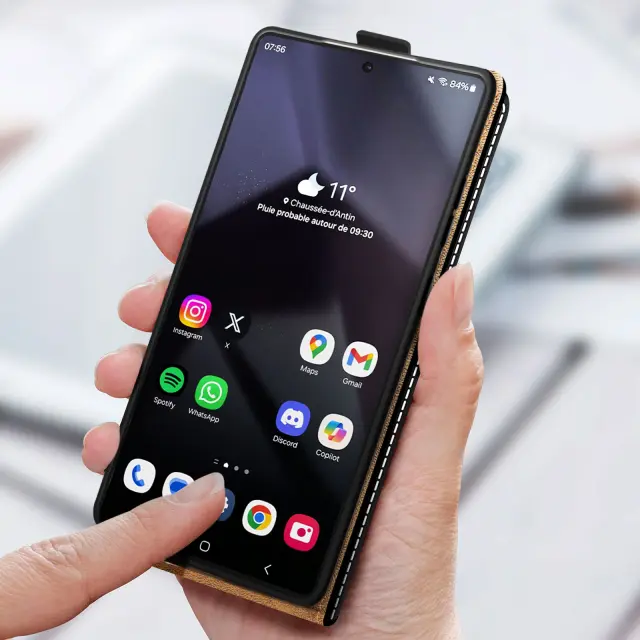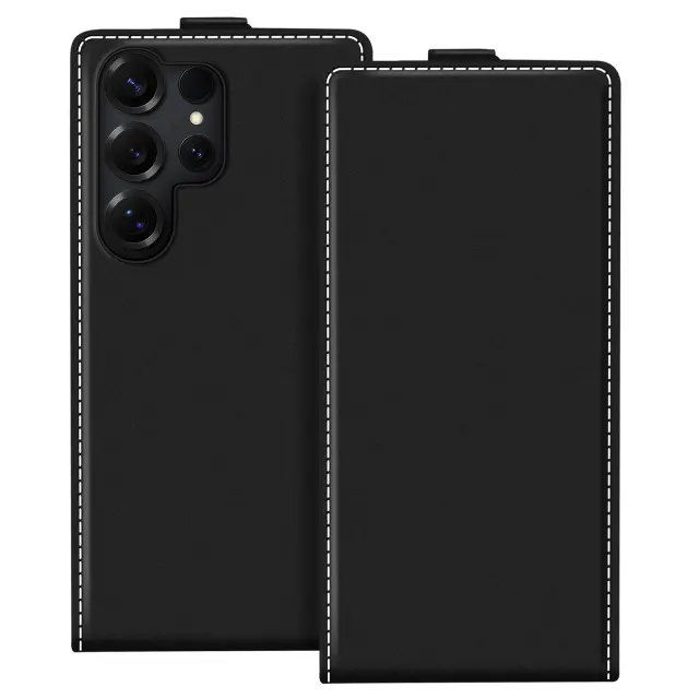 Navpično ohišje za Samsung Galaxy S25 Ultra z držalom za kartice, Črna