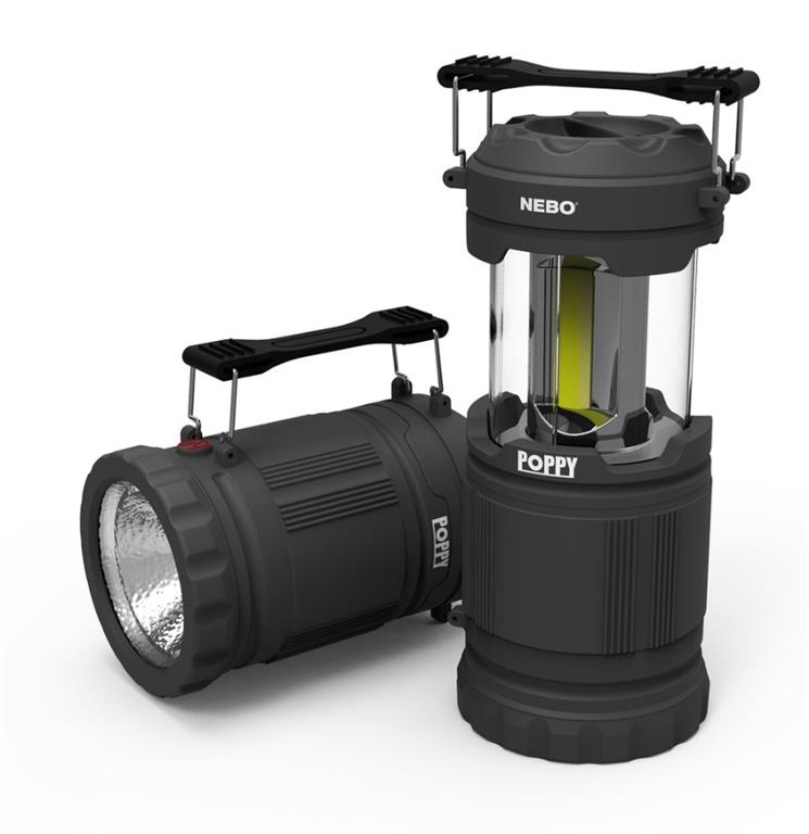 Svetilka Nebo Poppy je kombinacija lanterne s svetilnostjo 300 lumnov in ročne svetilke s svetilnostjo 120 lumnov. Deluje s pomočjo treh AA baterij, ki omogočajo maksimalno do 18 ur delovanja. Svetilka je trpežna saj ima gumirano ohišje odporno na udarce. Za lažje prenašanje in namestitev pa ima tudi nastavljiv ročaj.