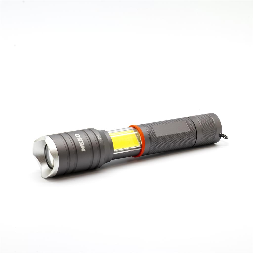 Nebo Tac Slyde je ročna baterijska svetilka, ki nudi kar 12x nastavljivo povečavo in 5 načinov osvetlitve. Narejena je zelo inovativno, saj jo je moč raztegniti in tako imate še eno luč s tremi načini osvetlitve, vključno z rdečo utripajočo lučjo, ki lahko pride prav v sili. Narejena je iz trpežnega letalskega aluminija ter se ponaša z odpornostjo na udarce in s standardom vodotesnosti IPX4. Močan magnetni spodnji del omogoča priročno prostoročno osvetlitev in tako je svetilka uporabna tudi kot delovna svetilka. Priročna vrvica, ki jo lahko namestite okrog zapestja poskrbi, da bo svetilka vedno pri roki.