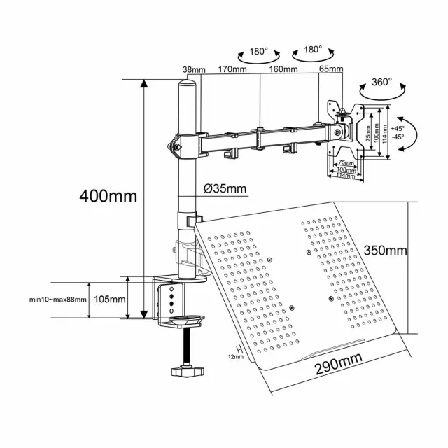 Nedis, 15„ do 32“ stojalo VESA za monitorje za osebne računalnike in prenosnike, Črna