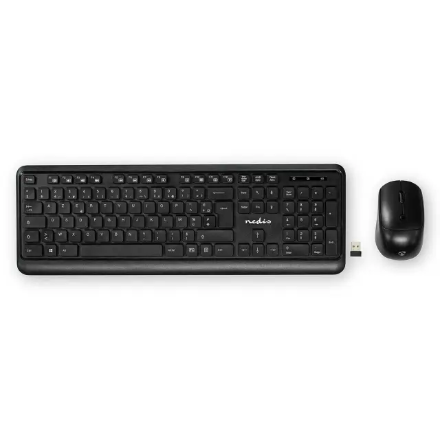 Nedis, Francoska brezžična tipkovnica QWERTY v paketu z brezžično miško in sprejemnikom USB Nano, Črna