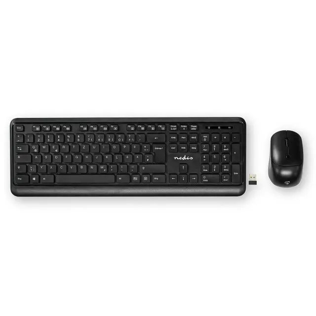 Nedis, Nemški komplet brezžične tipkovnice QWERTZ z brezžično miško in sprejemnikom USB Nano, Črna