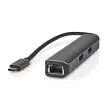 Nedis, Razdelilnik USB-C 5-v-1 z RJ45 žensko / 3USB-A / HDMI 4K 5Gbps izhod 0,2 m, Črna