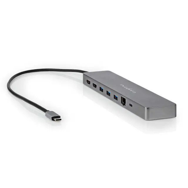 Nedis, Vozlišče 10 v 1 USB-C z RJ45 / 3USB-A / 3,5-milimetrskim priključkom / 2USB-C / 2HDMI 0,4 m, Antracit siv