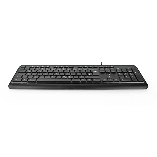 Nedis, Žična tipkovnica USB-A QWERTY z nemško razporeditvijo, 104 gumbi, Črna