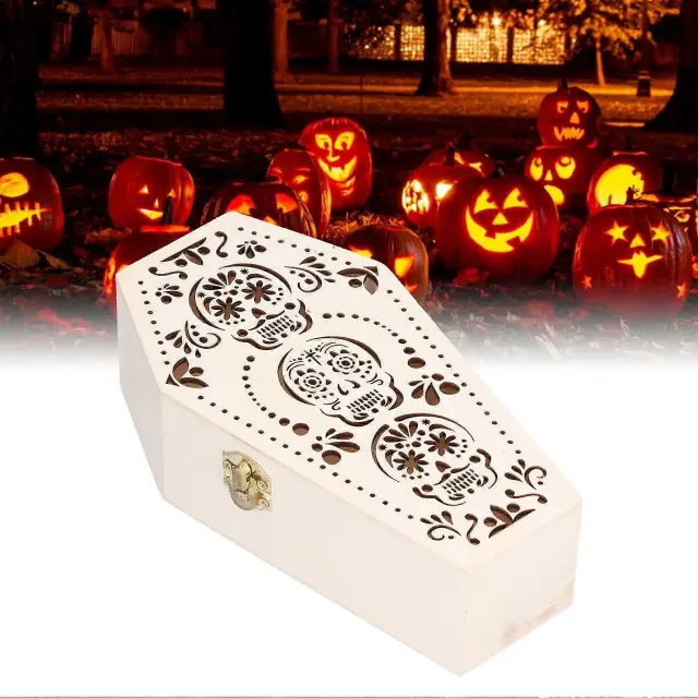 Nedokončana lesena škatla za krsto za pogreb majhnih hišnih ljubljenčkov, DIY obrtna dekoracija glave lobanje za noč čarovnic, spominek za slika