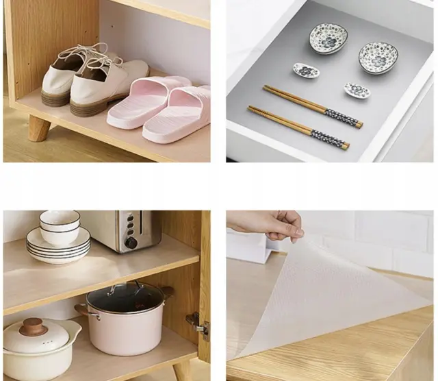 Podloga se bo zaradi prilagodljive velikosti hkrati prilegala v veliko omaro, lahko pa tudi v majhen predal, saj jo lahko razrežete na ustrezno velikost. Po razrezu jo lahko aplicirate na več predalov (odvisno od velikosti predalov). Podloga preprečuje zdrs predmetov, ki so na njej. Po nanosu podloge se vse stvari, ki so se premikale in praskale po površini omare ali predalov, ne bodo več premikale, pohištvo v notranjosti pa bo še dolgo kot novo. Zahvaljujoč dejstvu, da je izdelana iz plastike, je podloga odporna na poškodbe in je zelo trpežna. Zahvaljujoč uporabljenemu materialu dobro ščiti površino pred umazanijo in praskami. Podloga se lahko uporablja praktično povsod, kjer je to potrebno. Uporaba je možna med drugim v omarah, predalih, na steklenih, lesenih, keramičnih ali plastičnih površinah. V garažo za orodje in celo v kopalnico med kopanjem živali.