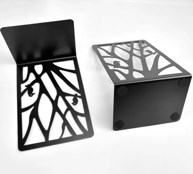 Elegantna in moderna estetika: z elegantnim črnim zaključkom in čistim, minimalističnim dizajnom se knjižni držali prilegajo večini stilov notranjosti. Prispevajo k modernemu in elegantnemu počutju na vaših knjižnih policah in na pisalni mizi.