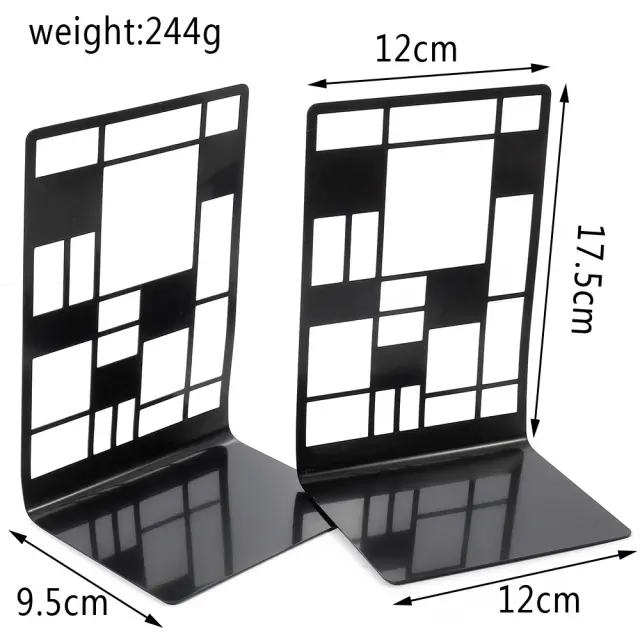 Robustna in stabilna zasnova: Knjižni držali so izdelani iz visokokakovostne zlitine, ki zagotavlja zanesljivo podporo in preprečuje, da bi se knjige prevrnile. Stabilno podnožje zagotavlja, da police ostanejo organizirane, knjige pa varno na mestu.