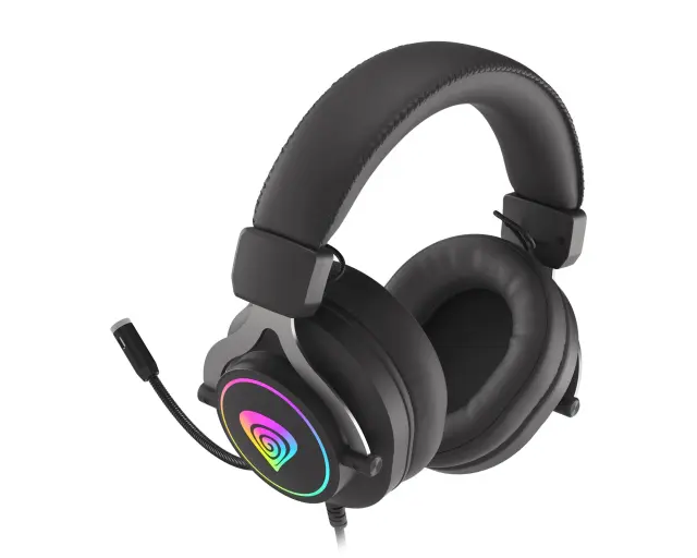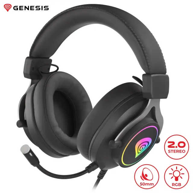 GENESIS NEON 750 STEREO 2.0, RGB LED osvetlitev, pleten USB kabel, gaming slušalke z mikrofonom črne