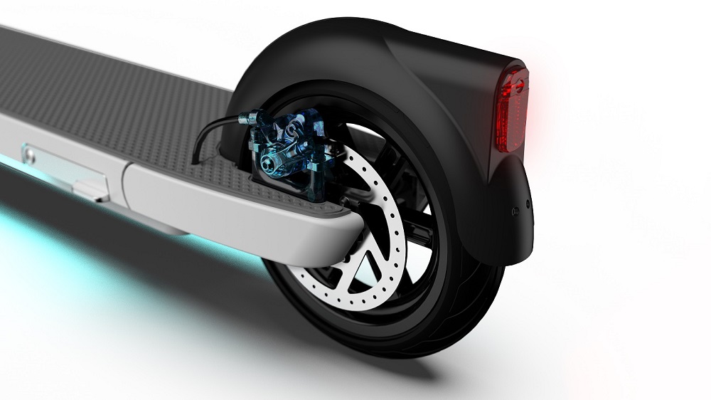 Električni skiro vam zagotavlja odlične vozne zmogljivosti in hkrati skrbi za vašo varnost. Opremljen je z dvojnim zavornim sistemom E-ABS zavoro spredaj in mehansko disk zavoro zadaj. Za večjo vidljivost v prometu pa ima skiro odsevnike spredaj, zadaj in na strani.