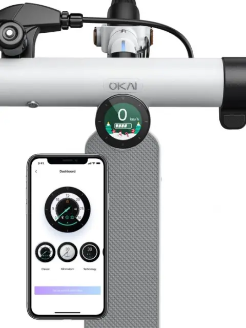 Zahvaljujoč preglednemu LCD vgrajenemu zaslonu, lahko vsak trenutek preverite hitrost, stanje baterije in način vožnje (sport, normal, eko). Preko aplikacije Okai, pa vam omogoča personalizirati med različnimi slogi prikaza na zaslonu in si boste skiro lahko hitro nastavili po svojih željah.