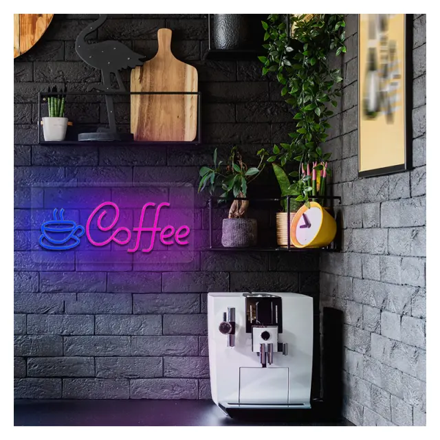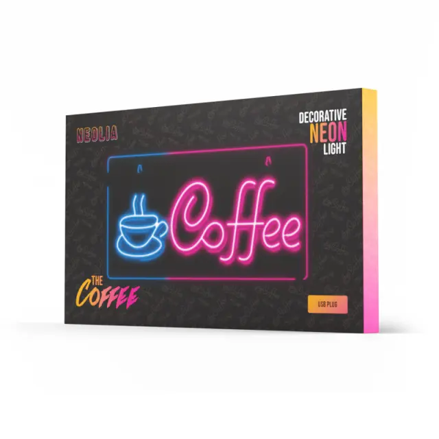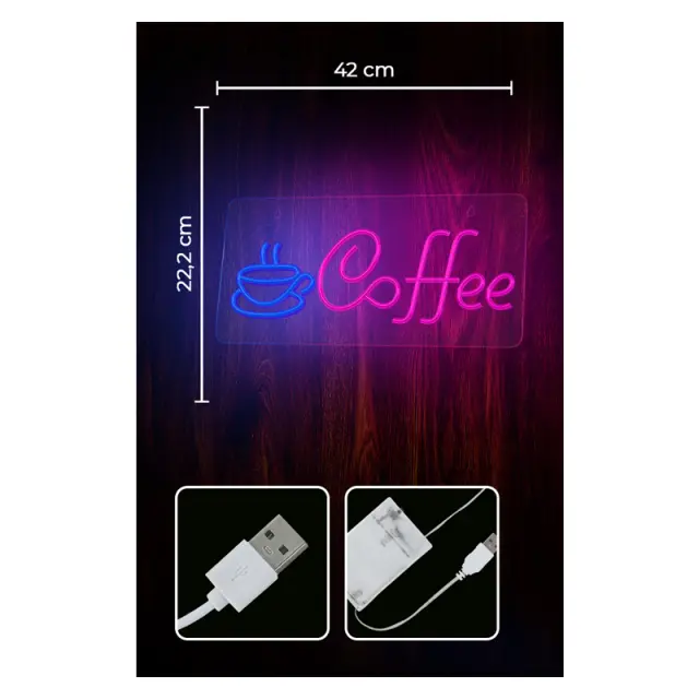 Stenska neonska LED luč v obliki napisa Coffee. Napaja se preko USB priključka ali z 3x AA baterijami.