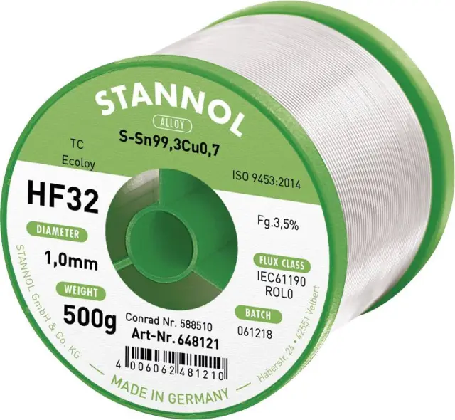 Neosvinčena žica za spajkanje Stannol HF32 3500 Sn99Cu1 500 g 1.0 mm