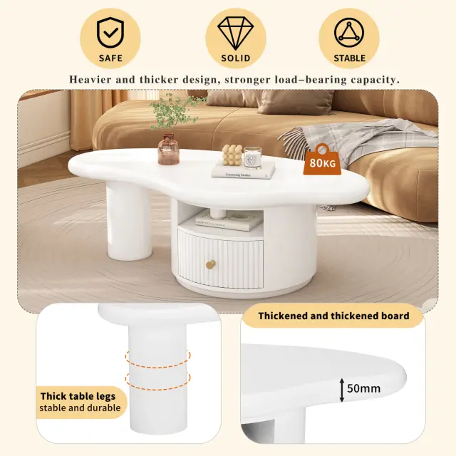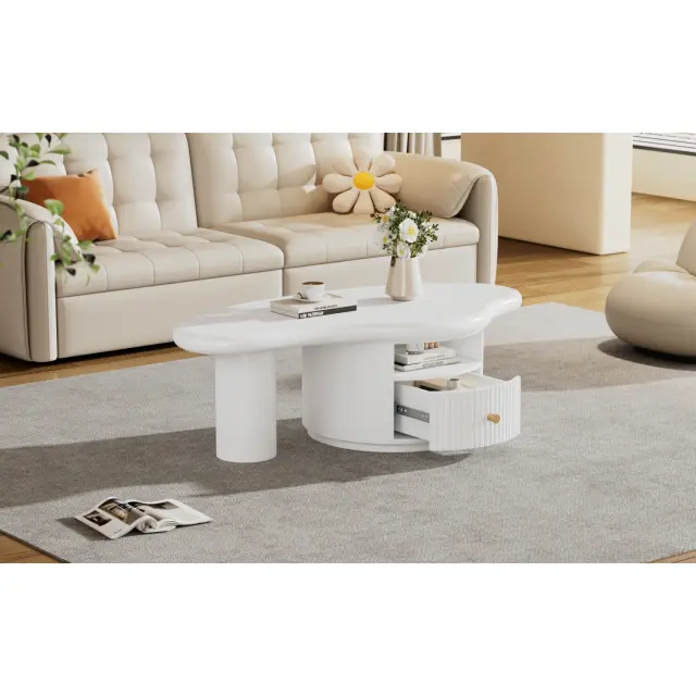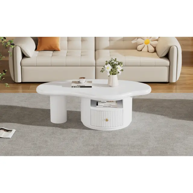 Nepravilna klubska mizica v obliki oblaka, 110x60x37,5 cm, 1 predal, MDF