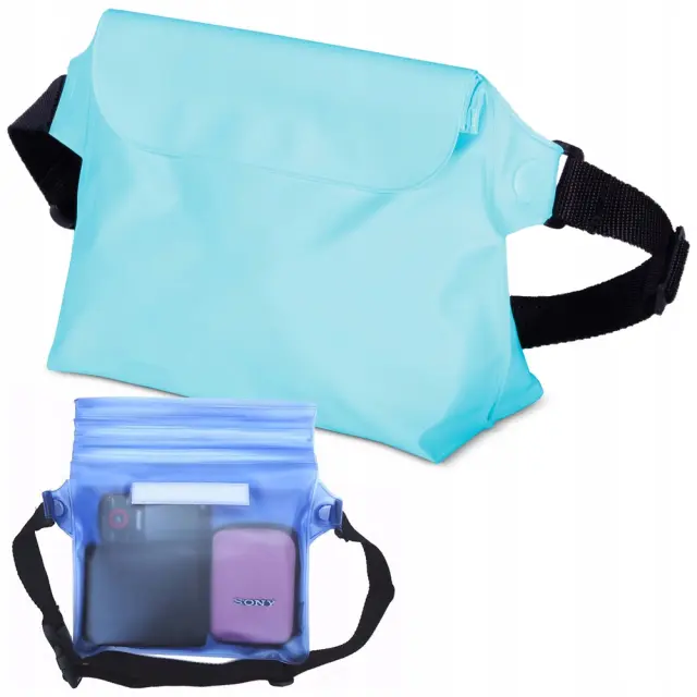 NEPREMOČLJIVA PVC STENSKA TORBA Z ZAPENJANJEM V PASU, SVETLO MODRA