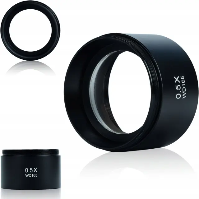 ✅ Delovna razdalja 165 mm: Ta objektiv ima udobno delovno razdaljo 165 mm. To uporabnikom omogoča svobodo gibanja in udobje pri rokovanju z orodji ali predmeti pod mikroskopom. Delovni prostor je pomemben dejavnik za udobje pri delu in natančnost opazovanja.